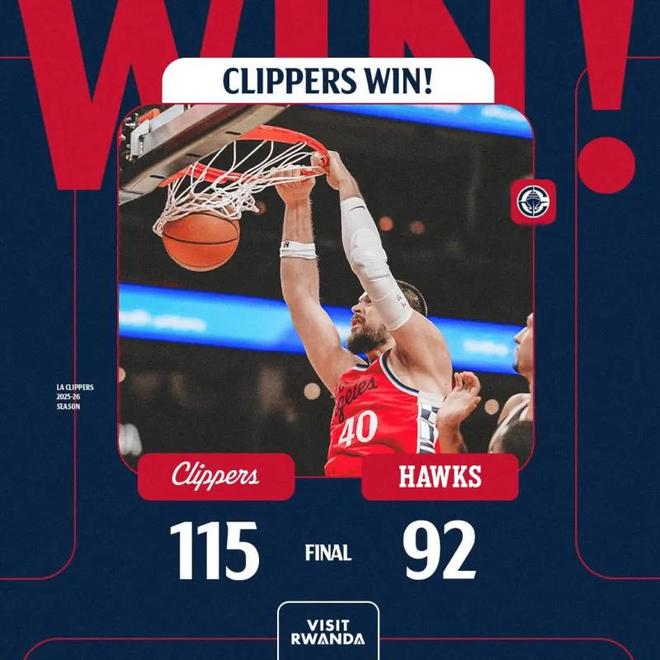 于是,就有了這場比賽前最重磅的操作:裁掉保羅。消息一出,社交媒體炸了鍋,大部分聲音都在罵快船“忘恩負義”。可比賽一打完,所有批評都顯得那么蒼白無力——沒有保羅的快船,竟然打得像換了一支球隊。整場比賽,快船從第一分鐘就掌控了局面。首節(jié)打完已經(jīng)領(lǐng)先6分,半場結(jié)束時優(yōu)勢擴大到14分,下半場直接打花。老鷹雖然缺了特雷·楊和波神和約翰遜三大主力,但13勝9負的戰(zhàn)績擺在那,怎么也算不上任人宰割的魚腩。可今晚的快船,就是這么殘暴。
