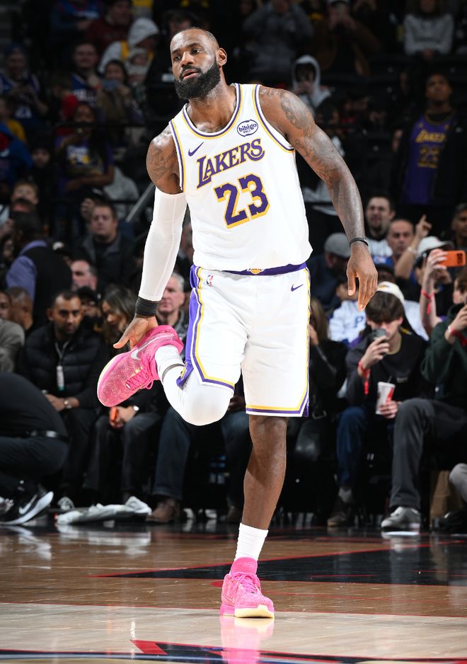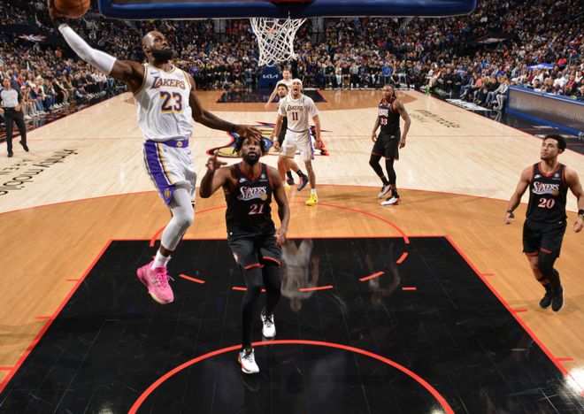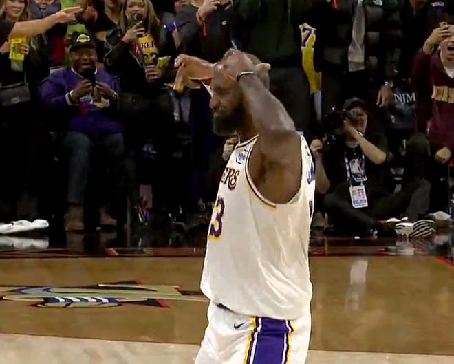 末節(jié)連拿7分幫助湖人打停費城時,勒布朗為自己戴上了皇冠,要知道他還有20多天就41歲了。