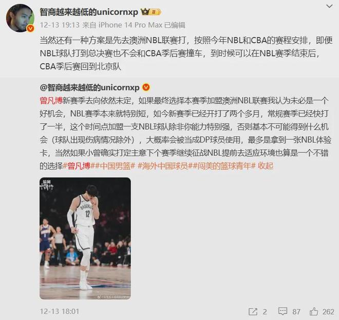 既沒有續(xù)約北京隊(duì),也沒簽約其他聯(lián)賽,意味著特別荒唐曾凡博竟然正處于無球可打的狀態(tài)......有媒體人建議這位年僅22歲的中國前鋒可以先加盟澳洲聯(lián)賽NBL歷練,之后再看情況決定是否回歸北京隊(duì),到時(shí)還能趕上CBA季后賽。