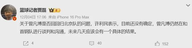 據(jù)之前北京隊(duì)主帥許利民透露,曾凡博還在和球隊(duì)管理層進(jìn)行談判溝通,這哥們今夏新秀合同到期,所以雙方現(xiàn)在是就續(xù)約問題出現(xiàn)了分歧。