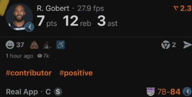 本賽季至今,戈貝爾場(chǎng)均出戰(zhàn)31.1分鐘,得到11.5分10.3板1.4帽,投籃命中率74.5%高居聯(lián)盟,然而罰球命中率只有52%。
