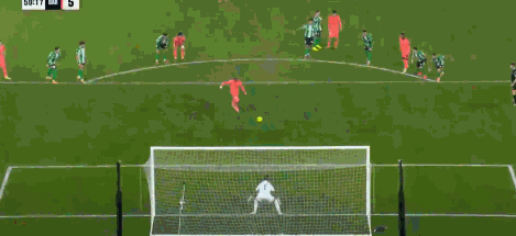 第90分鐘,孔德送點(diǎn),庫喬主罰命中,巴薩5-3