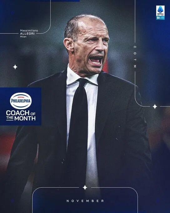 據(jù)意甲官網(wǎng)消息,米蘭主帥阿萊格里被評(píng)為聯(lián)賽11月最佳主帥。